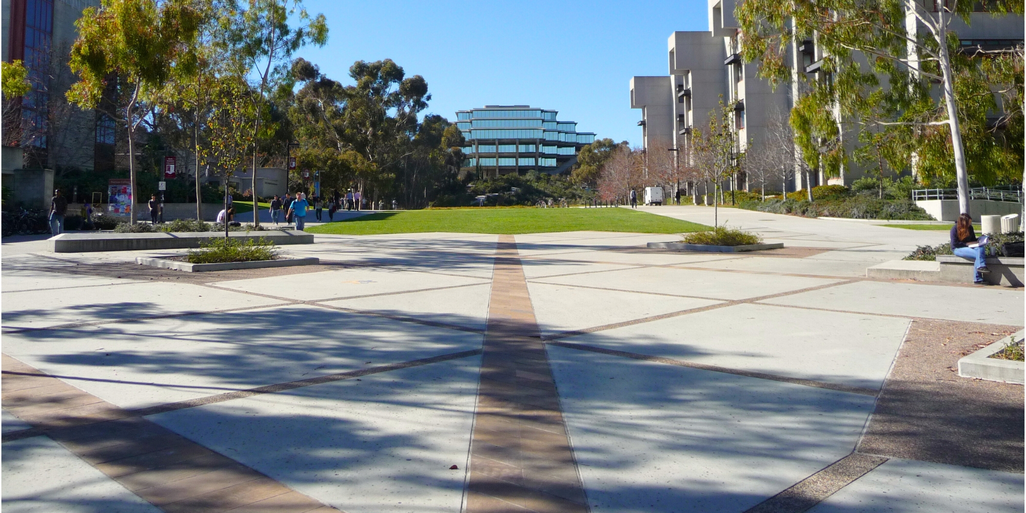 Located between UCSD Structural Engineering Powell Laboratory and Jacobs Hall.